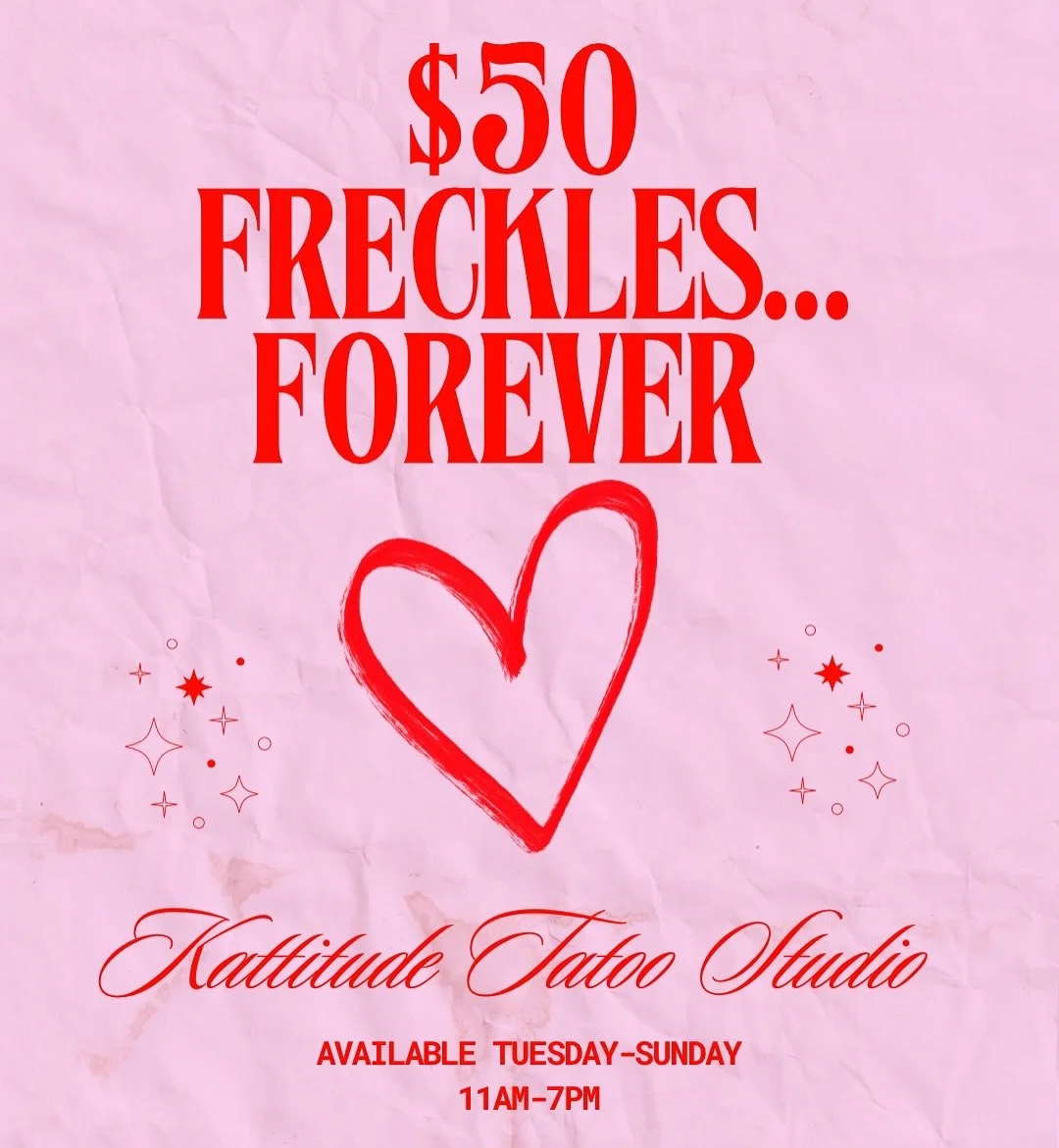 View fullsize Ya’ll asked, we answered! ✨$50 freckle tattoos are here to stay…..FOREVER!✨Your choice of ink: